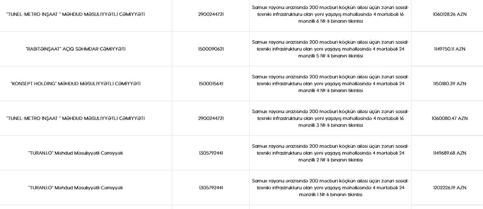 Yaşayış məhəlləsinin tikintisinə aşağıdakı şirkətlər cəlb edilib:
