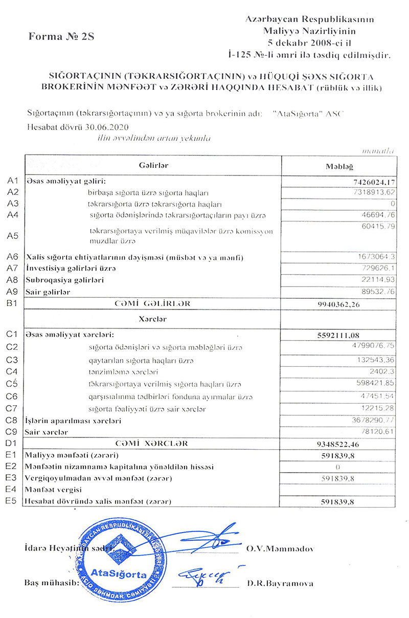 Şirkətin gəlirləri və xalis mənfəəti azalıb“AtaSığorta” ASC 2020-ci ilin 1-ci yarısını 591 min 840 manat xalis mənfəət ilə başa vurub. 2019-cu ilin 1-ci yarısı ilə müqayisədə “AtaSığorta”nın xalis mənfəəti 1,9 dəfə azalıb. Şirkət 2019-cu ilin yanvar-iyun dövrünü 1 milyon 112 min 742 manat xalis mənfəət ilə bağlamışdı.