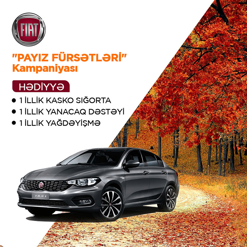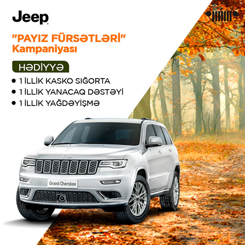 Digər təklif isə sərfəli şərtlərindən ibarət “Payız Fürsətləri” adlı kampaniyadır. Bu kampaniya çərçivəsində “Avtolüks Azərbaycan” şirkəti Jeep (Grand Cherokee, Compass və Renegade), Dodge (Durango, Charger, Challenger), Alfa Romeo (Mito, Giulietta, Stelvio və 4C) və Fiat (Tipo) modelləri üçün aşağıdakı satış şərtlərini təklif edir: