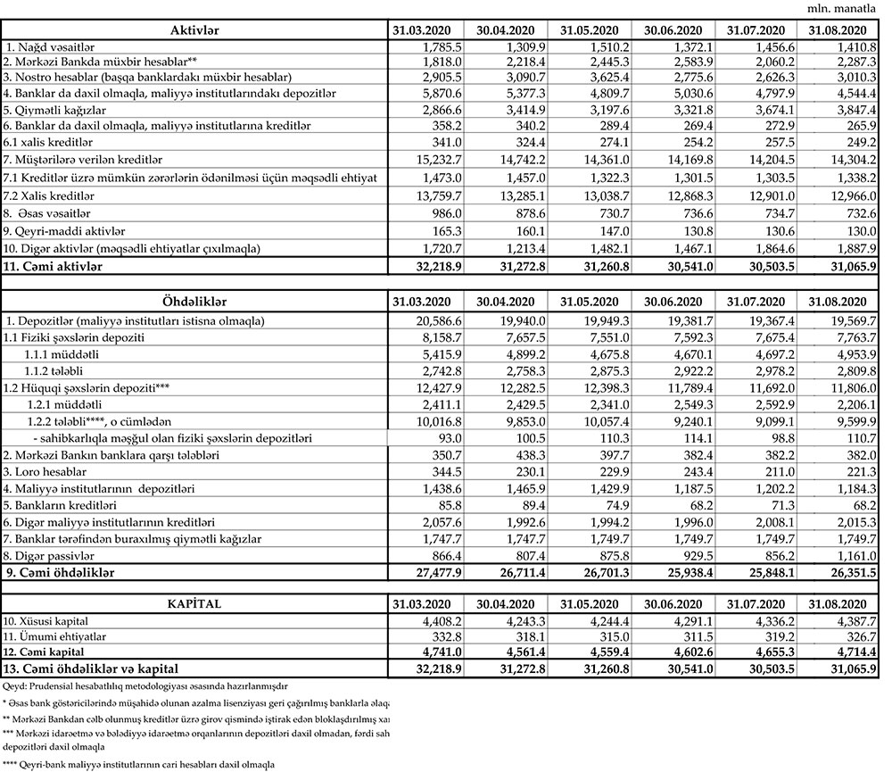 Kreditlər 2020-ci ilin mart ayında 15 milyard 232 milyon 7 min manata çatsa da, koronavirus ilə əlaqədar tətbiq edilən karantin tədbirləri aprel-iyul dövründə azalmaya səbəb olmuşdu.