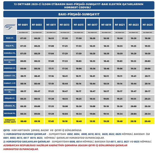"Azərbaycan Dəmir Yolları" QSC sərnişin sıxlığını və sərnişinlərin müraciətlərini nəzərə alaraq sabahdan Bakı-Pirşağı-Sumqayıt-Bakı elektrik qatarlarının hərəkət cədvəlində dəyişiklik edəcək.