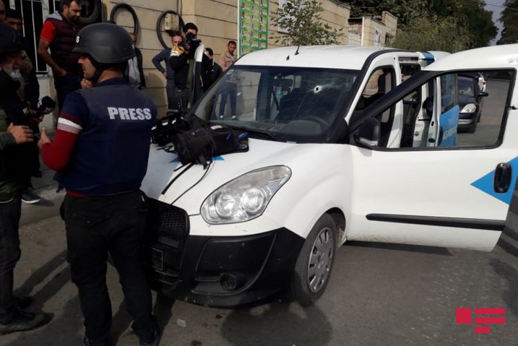 Azərbaycan Dövlət Televiziyasının maşını da atəşə məruz qalıb.