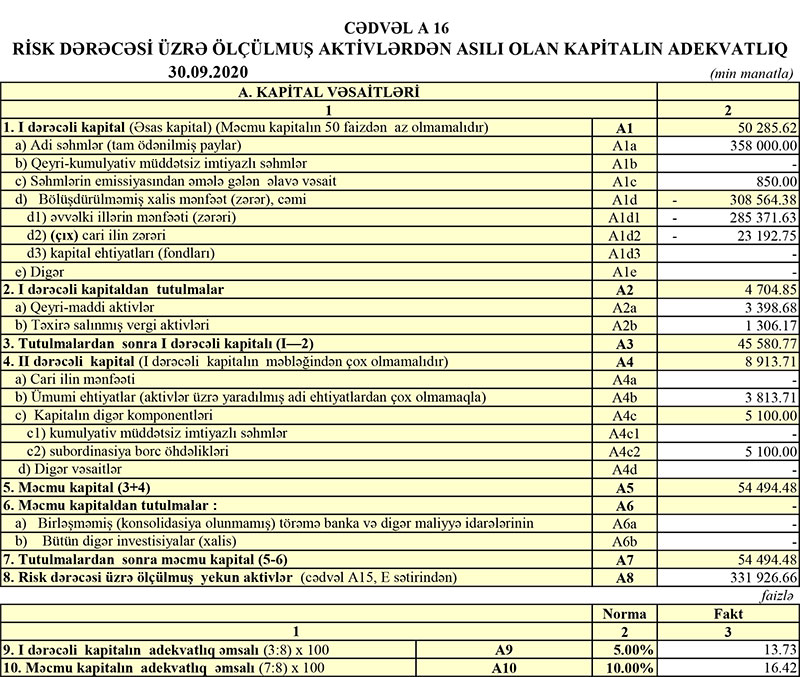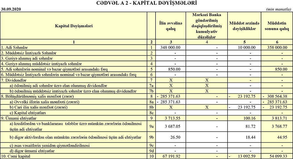 Qeyd edək ki, 30 Sentyabr 2020-ci il tarixində Yelo Bankın yığılmış zərəri 308 milyon 564 min manata çatıb. Bankın 358 milyon manatlıq nizamnamə kapitalı yığılmış zərər qədər "əriyib" və 49 milyon 436 min manatı qalıb.