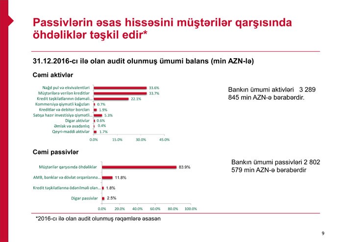 Bütün rəqəmlər 31 dekabr 2016-cı il tarixinə verilmişdir və birləşdirilmiş audit edilmiş maliyyə hesabatlarına əsaslanır.