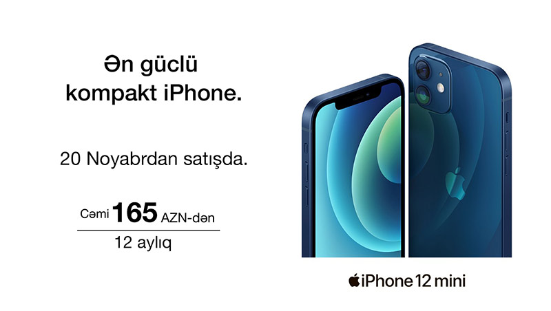 (®️) 20 noyabrdan Azərbaycanda Apple-ın yeni flaqman xəttinin ən kompakt və sərfəli smartfonu olan iPhone 12 mini-nin satışları başlayacaq.