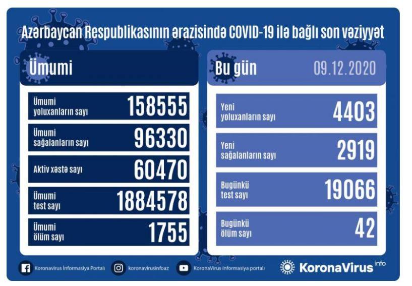 Qeyd edək ki, 08 Dekabr 2020-ci il tarixində isə son gün ərzində 4387 yoluxma faktı qeydə alındığı açıqlanmışdı.