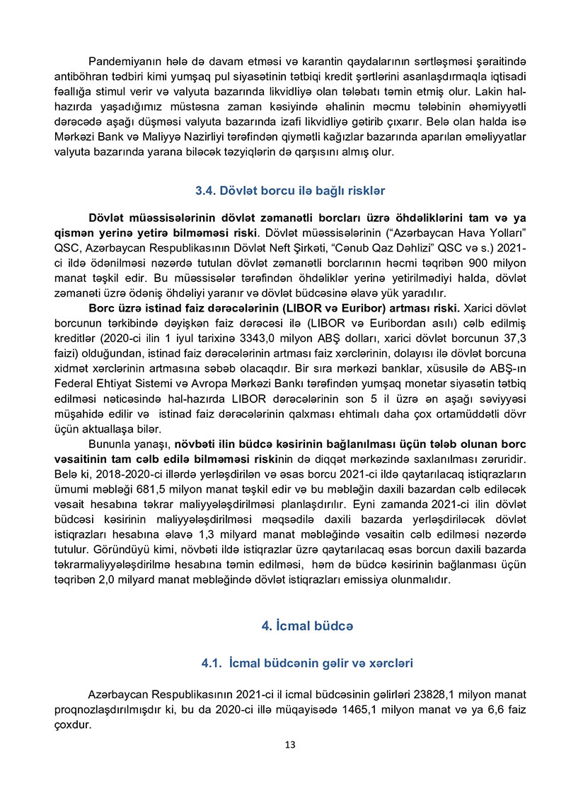 2021-ci il dövlət büdcəsi layihəsinə dair izahat - TAM VERSİYA