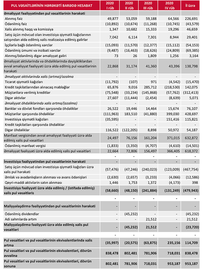 Ötən ilə cəmi faiz və qeyri-faiz gəlirlərinin 40 milyon 593 min manat artmasına qarşılıq faiz və qeyri-faiz xərcləri 25 milyon 193 min manat artıb. Nəticədə, faiz və qeyri-faiz gəlirlərində xalis 15 milyon 400 min manat artım reallaşıb.