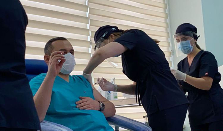 Azərbaycanda COVID-19 əleyhinə vaksinasiyadan ilk keçənlər Səhiyyə naziri Oqtay Şirəliyev, İcbari Tibbi Sığorta üzrə Dövlət Agentliyinin sədri Zaur Əliyev və TƏBİB-in İdarə Heyətinin sədri Ramin Bayramlı oldu.