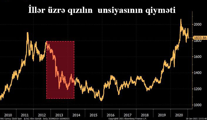 Qızıl qiymətəri, 2013-cü ilin Yanvar ayında sərt bir şəkildə düşmüş və iki il ərzində aşağı qiymət səviyyələrində qalmışdı. 2021-ci ilin Yanvar ayında isə bu sərt enişə səbəb olan işarələrin yenidən ortaya çıxdığı görünür. Qızıl qiymətlərində 2013-cü ildə yaşanan sərt eniş təkrarlana bilər?