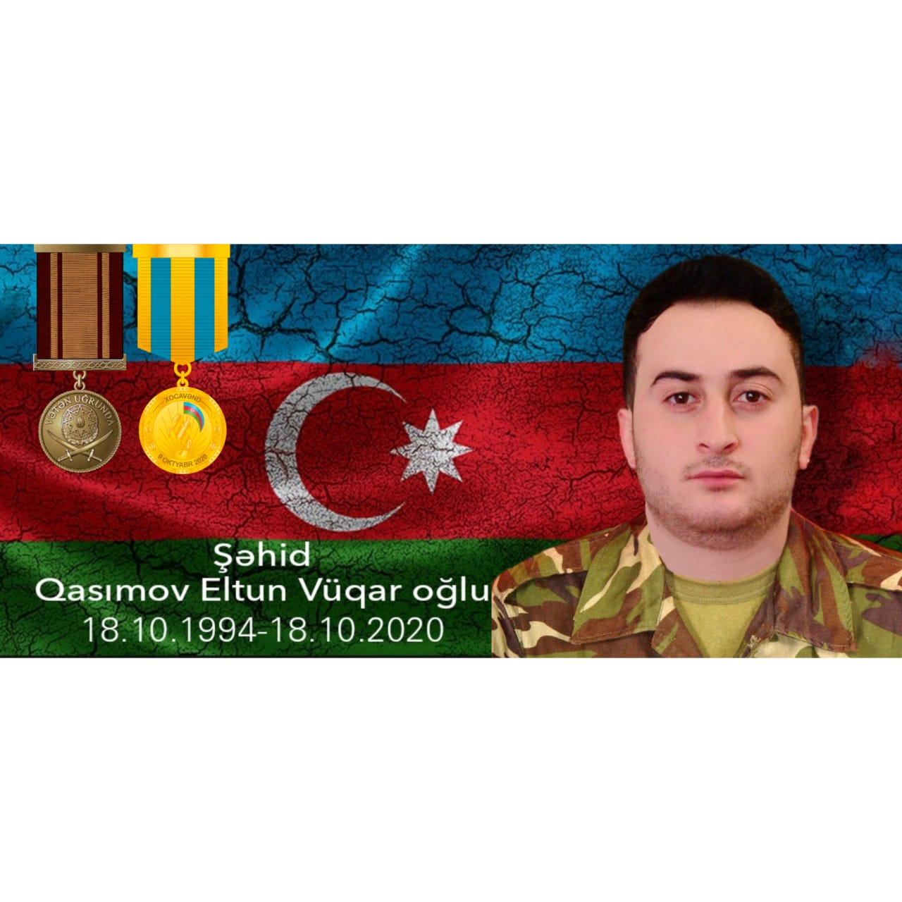 “AS Group İnvestment” MMC-nin bayram günlərində ailəsinə qonaq olduğu digər şəhidimiz 1994-cü il doğumlu Qasımov Eltun 28 sentyabr 2020-ci ildə hərbi komissarlığa yaxınlaşaraq çağırış vərəqəsini götürüb geridə ailəsini və 8 aylıq körpəsini buraxaraq “Oğlum Zeynə qalmasın deyə mən gedirəm bitirməyə” deyib igidliklə döyüşlərə yollanır. Füzuli, Cəbrayıl, Hadrut, Xocəvənd rayonlarının azad edilməsində qəhrəmanlıqla iştirak edir. 18 oktyabr, 2020-ci il tarixində, özünün 26-cı doğum günündə şəhidlik zirvəsinə ucalır. “Vətən uğrunda”, “Xocəvəndin azad edilməsinə görə” medallarıyla təltif olunur.