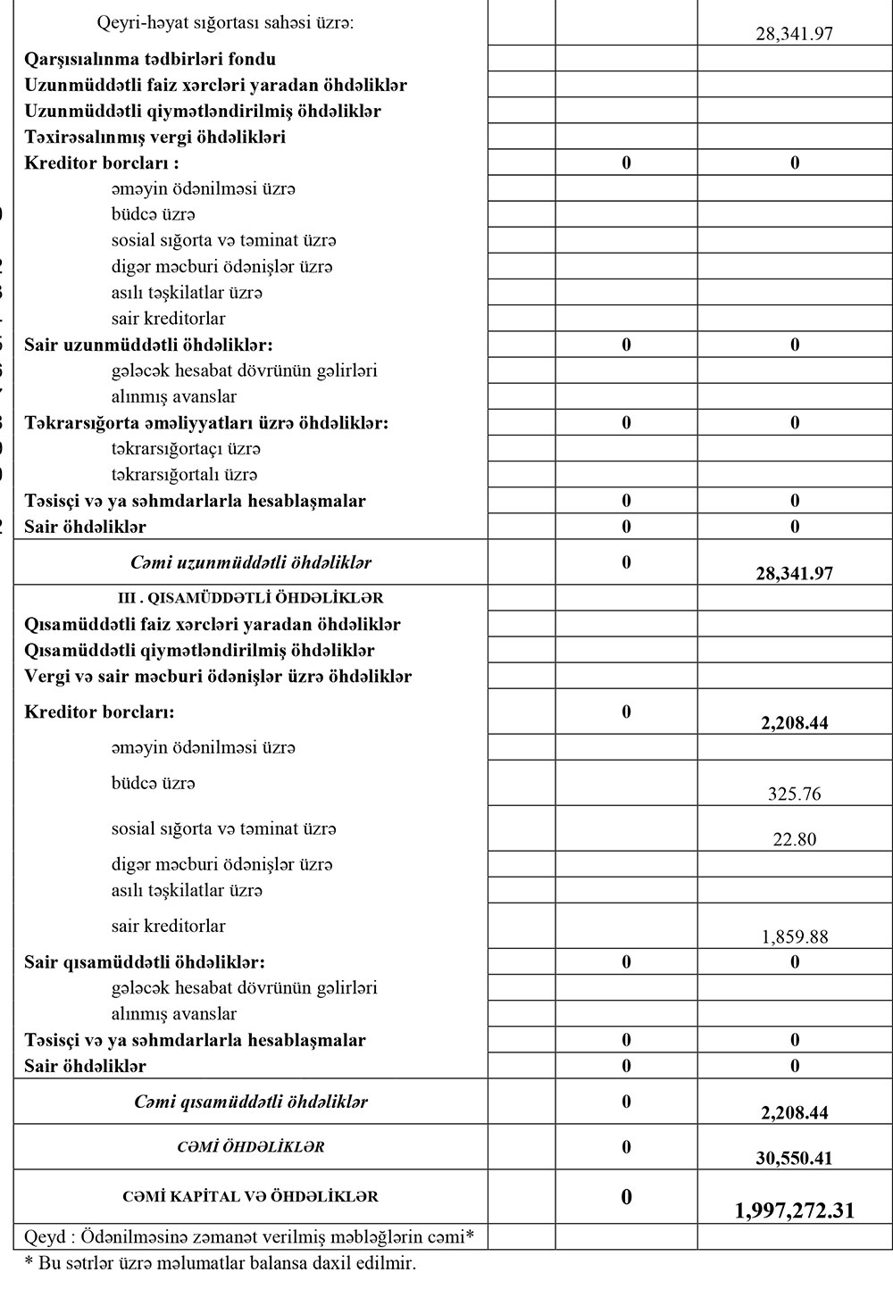 Marja xəbər verir ki, şirkət ötən il 17 min 741 manat sığorta haqları toplayıb, sığorta ödənişləri isə həyata keçirtməyib. Şirkət bu ildən aktiv fəaliyyətə başlayır.