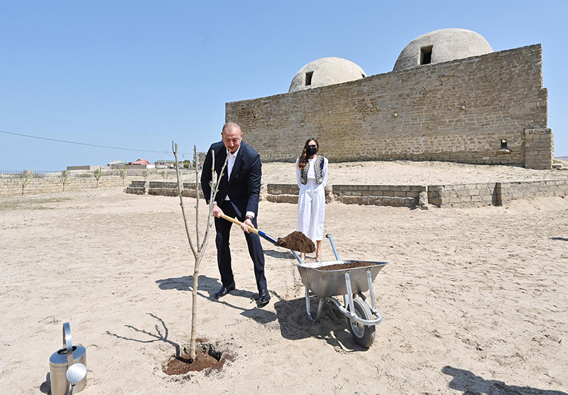 Dövlətimizin başçısı və birinci xanım qəsəbədə ağac əkiblər.