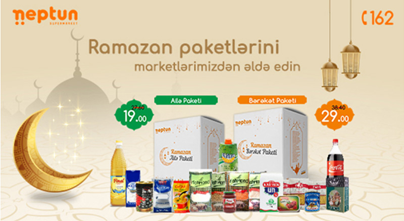 Bundan başqa Müqəddəs Ramazan ayında "Neptun Supermarketlər Şəbəkəsi” çox sərfəli xüsusi 2, Ailə və Bərəkət paketi hazırlayıb.