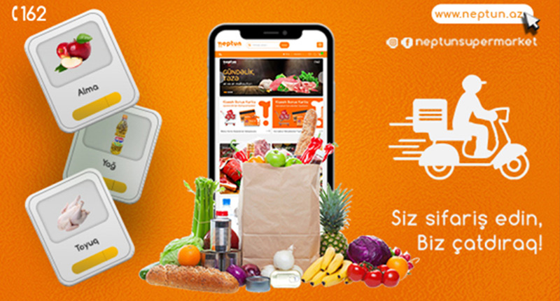 Bundan başqa"Neptun Supermarketlər Şəbəkəsi” sizlər üçün evdən çıxmadan, rahatlığınızı heç pozmadan və vaxt itirmədən istənilən məhsulu onlayn sifariş etmə imkanı verir. Bunun üçün yenilənmiş www.neptun.az saytına daxil olun, yeni dizayn və yeni istifadə funksiyaları ilə rahat qeydiyyatdan keçin və istənilən kateqoriyadan seçdiyiniz məhsulları səbətinizə əlavə edin. Daha sonra sifarişi rəsmiləşdir bölməsinə daxil olub, çatdırılma və ödəniş üsullarını seçərək sifarişinizi tamamlayın. Sifarişiniz sürətli, təhlükəsiz və gigiyenik olaraq sizə çatdırılacaqdır. Ödənişi isə istər onlayn, istərsəniz də qapıda nağd və ya kartla edə bilərsiniz. Ən əsası, online sifariş zamanı sizlər üçün XÜSUSİ KAMPANİYALAR nəzərdə tutulub.