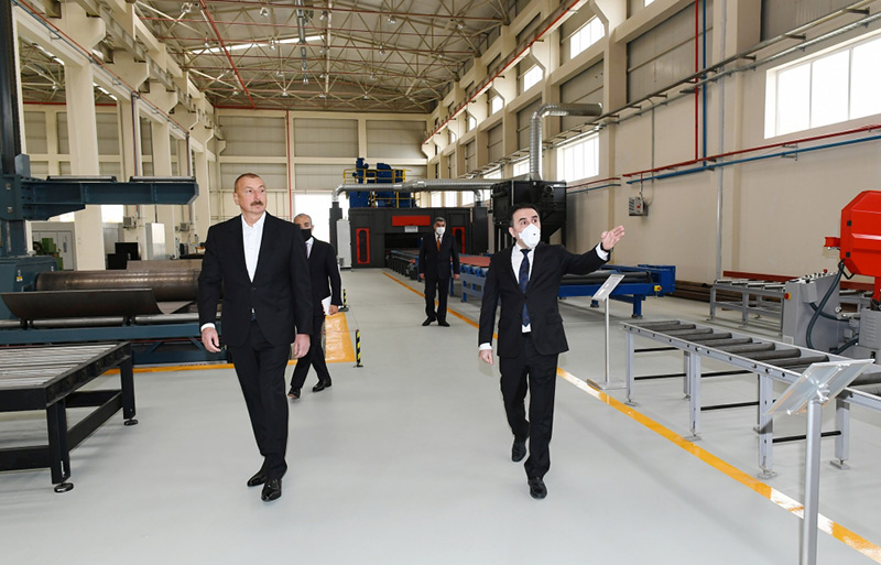 Marja xəbər verir ki, Azərbaycan Respublikasının Prezidenti İlham Əliyev zavodun açılışında iştirak edib. Zavodla tanış olan dövlətimizin başçısı müəssisəni işə salıb.