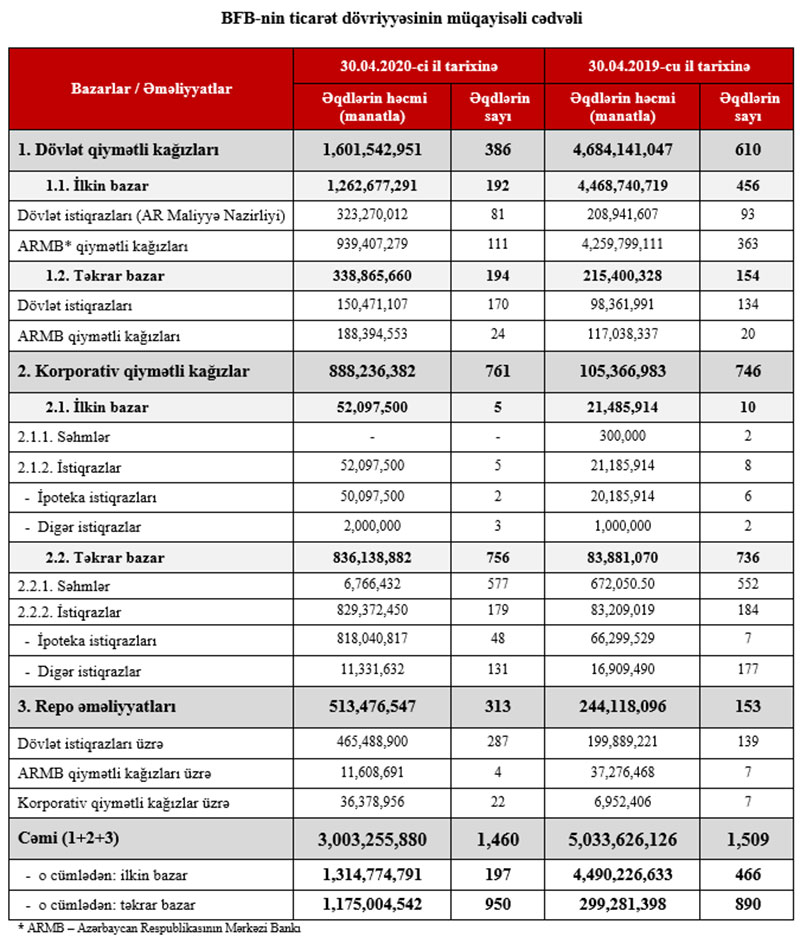 İlk 4 ayda əqdlərin sayı 247, əqdlərin orta günlük həcmi 8 milyon 252 min manat təşkil edib.