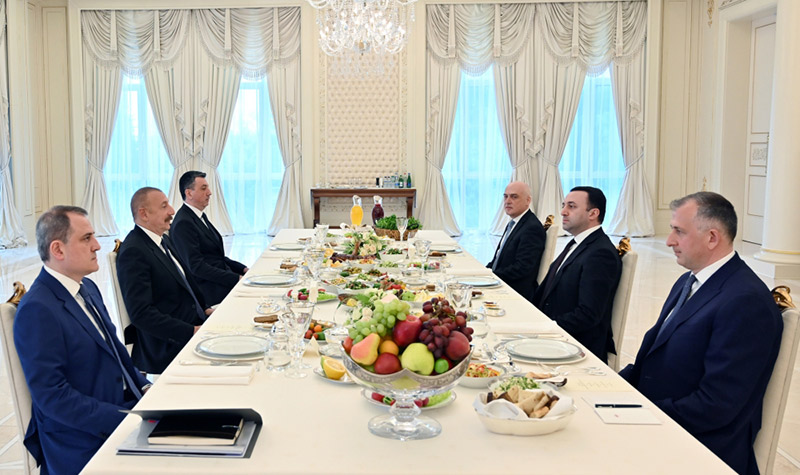 Sonra Azərbaycan Prezidenti İlham Əliyev və Gürcüstanın Baş naziri İrakli Qaribaşvili işçi nahar ediblər.