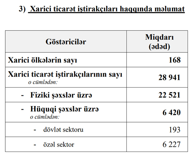 Marja xəbər verir ki, 2021-ci ilin ilk 5 ayında 28 min 941 şəxs idxal və ya ixrac əməliyyatı ilə məşğul olub. Ötən ilin eyni dövründə 23 min 76 şəxs xarici ticarət iştirakçısı idi.