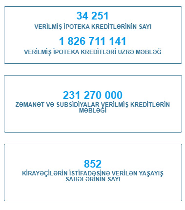 Bundan başqa, qurum bəyan edib ki, indiyə qədər 231 milyon 270 min manat məbləğində biznes kreditlərinə zəmanət verib, 852 mənzil isə kirayəyə vermək yolu ilə realizə edilib.