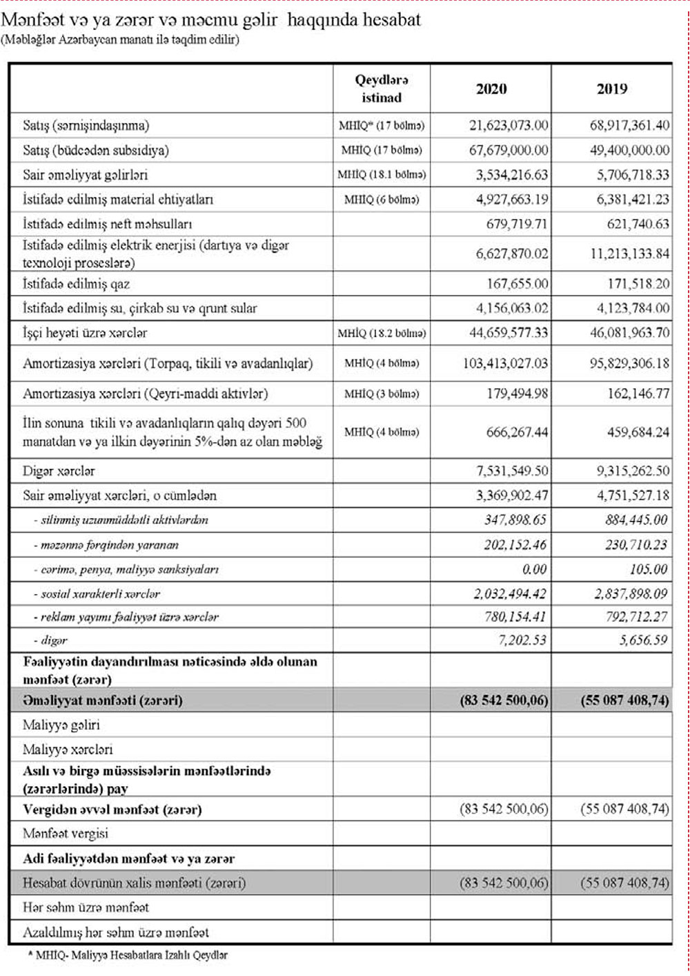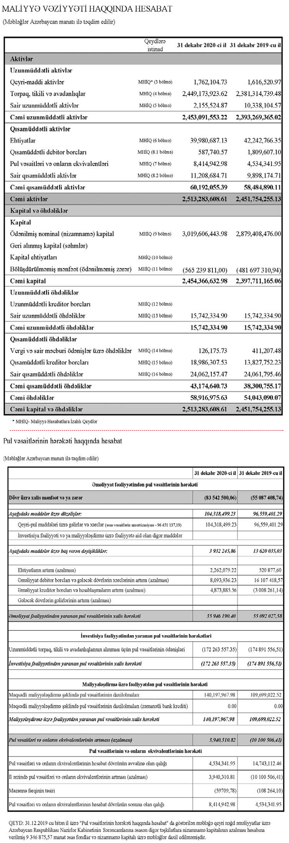 Son nəticədə səhmdar cəmiyyətinin yığılmış zərəri 17,35% artaraq 565 milyon 240 min manata çatıb.