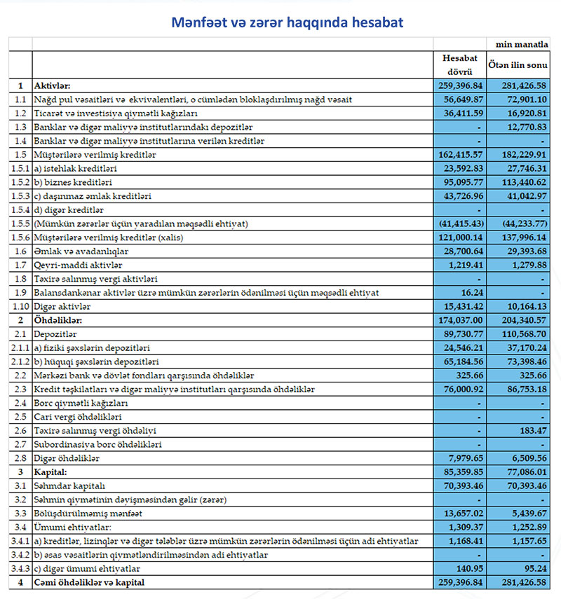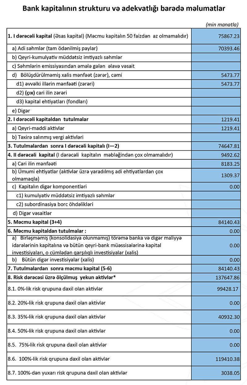Qeyd edək ki, bankın məcmu kapitalı 84.1 milyon manat təşkil edir.