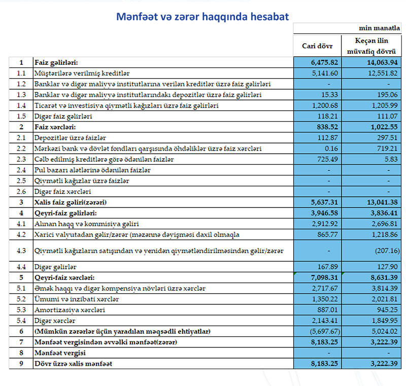 Məlumatda qeyd edilib ki, problemli kreditlərin həlli istiqamətində görülmüş işlərin nəticəsi olaraq kreditlər üzrə alınmış faiz gəlirləri ötən ilin cari dövrü ilə müqayisədə 2 dəfədən çox artıb.