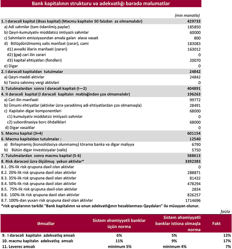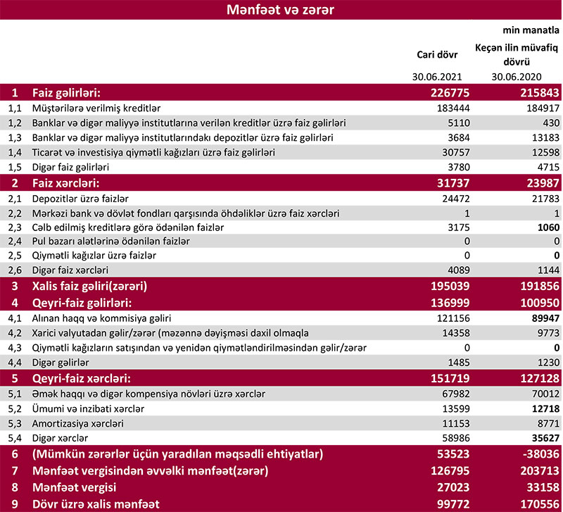 Gəlirlərin artmasına baxmayaraq xalis mənfəətin azalmasına faiz və qeyri-faiz xərclərinin artması və mümkün zərərlər üçün yaradılan məqsədli ehtiyatlara 53 milyon 523 min manat ayırma səbəb olub. Ötən ilin ilk 6 ayında ehtiyatdan azad olmuş 38 milyon 36 min manat mənfəətə əlavə edilmişdi.
