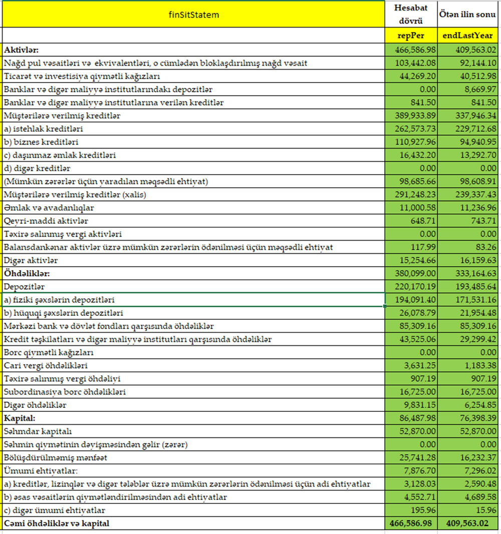ƏHALİNİN BANKDAKI ƏMANƏTLƏRİ ARTIB
