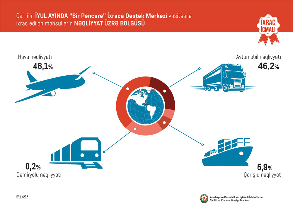 Cari dövrdə ixracatın əsas hərəkətverici amili neft sektoru olsa da, bərpa dönəmində qeyri-neft ixracı üzrə pay 13.2 faizə qədər artıb.