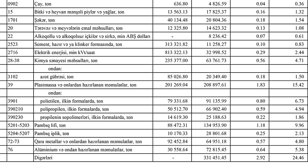 Azərbaycanın ən çox ixrac və idxal etdiyi mallar - SİYAHI