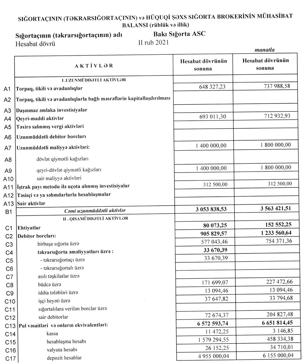 Cari ilin 1-ci yarısında "Bakı Sığorta" 2 milyon 233 min manat sığorta haqları hesablayıb. Eyni zamanda 1 milyon 761 min manat sığorta ehtiyatlarına yönəldilib.