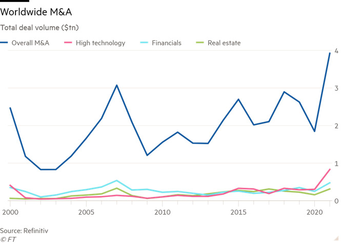 Artımın əsas səbəbləri çox aşağı xərcli kredit imkanları, özəl kapital qruplarının əlində toplanan trilyonlarla dollar və korporativ bazarın “iştaha” gəlməsidir. Nəticədə bu ilin yanvar-avqust aylarında müxtəlif sahələrdəki 40 mindən çox birləşmə və satılnalmaların həcmi 3,9 trilyon dollara çatıb. Müqayisə üçün - 2020-ci ilə həmin göstərici 1,9 trilyon dollar, 2019-cu ildə isə 2,6 trilyon dollar olub.