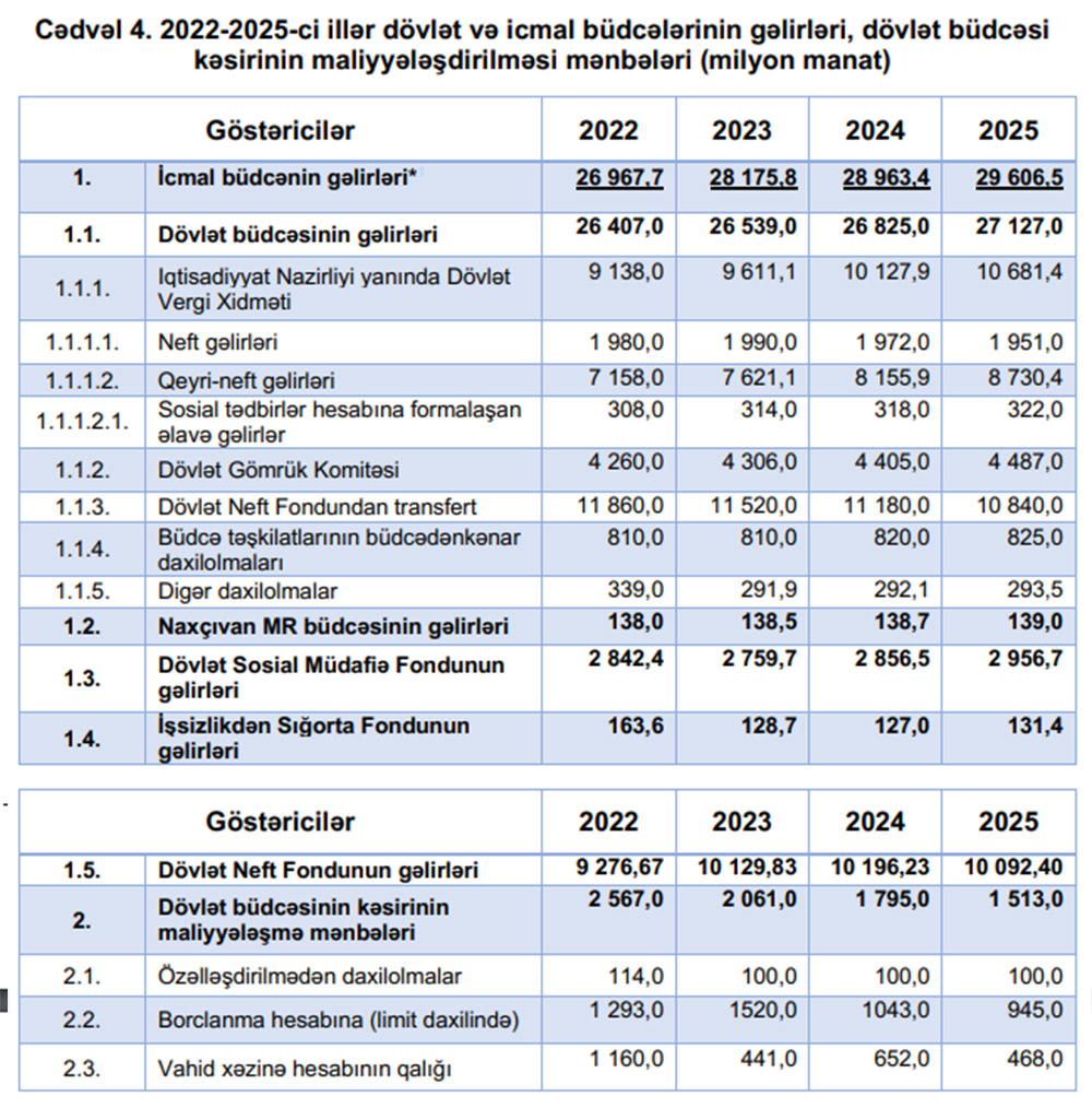 2022-2025-ci illər üçün makrofiskal çərçivə və 2022-ci il üçün icmal və dövlət büdcələrinin ilkin göstəriciləri: