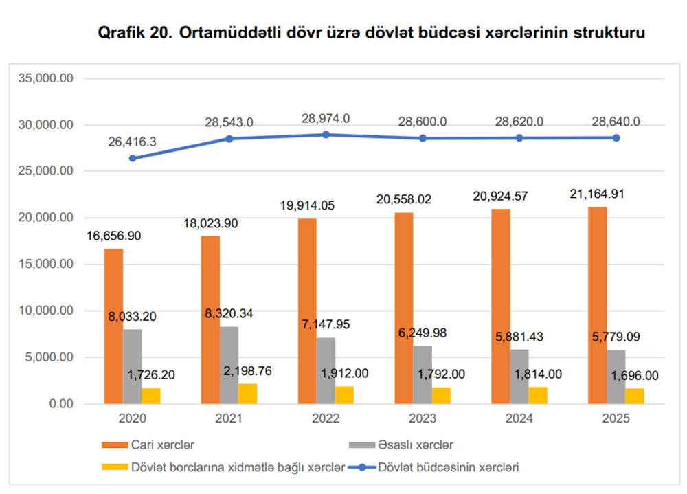 Dövlət büdcəsi xərclərinin funksional təsnifat üzrə strukturunda ən çox paya iqtisadi fəaliyyət (18,64 faiz), müdafiə və milli təhlükəsizlik (15,5 faiz), ümumi dövlət xidmətləri (14,7 faiz), təhsil (12,9 faiz) və sosial müdafiə və sosial təminat (12,4 faiz) xərcləri malik olacaqdır.
