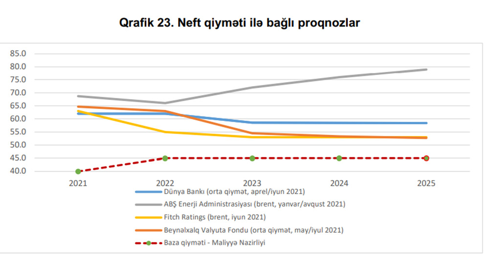 Qeyd edilib ki, ortamüddətli dövr üçün resurs zərfi hesablanarkən neftin bir barelinin orta illik qiyməti 45 ABŞ dollarına bərabər götürülmüşdür: