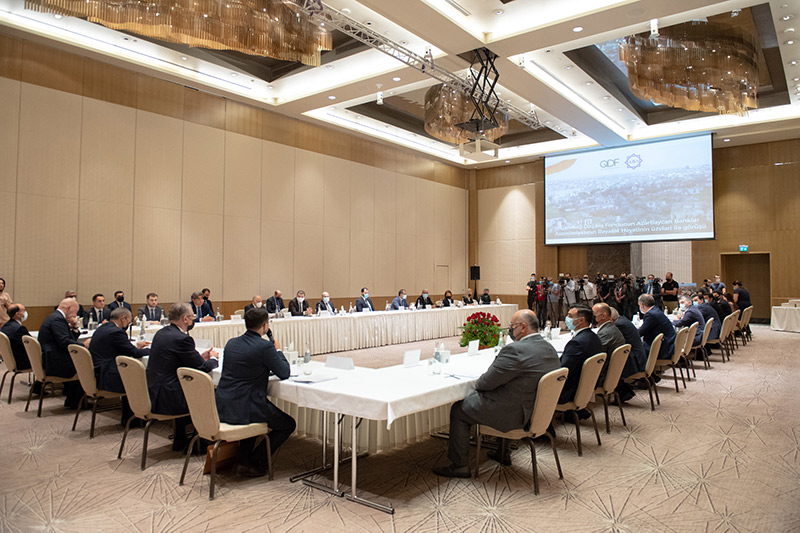 Qeyd edək ki, tədbirdə dağıdılmış binaları, yerlə-yeksan olunan tarixi abidələri əks etdirən “Qarabağda Urbisid” adlı sənədli film nümayiş olundu. Daha sonra tədbir iştirakçıları ilə sual-cavab sessiyası keçirildi, müxtəlif layihələr barədə təkliflər müzakirə olundu. Müzakirələr zamanı mövcud donorlarla əməkdaşlığın genişləndirilməsinin, dövlət-özəl sektor tərəfdaşlığının inkişaf etdirilməsinin, cəmiyyətin müxtəlif təbəqələri ilə yanaşı maliyyə və bank sektorunun, potensial donorların həmrəylik göstərərək prosesə cəlb olunmasının vacibliyi xüsusi vurğulandı. Şübhəsiz, dövlət və özəl sektorunun, müxtəlif təşkilatların və fərdi vətəndaşların birliyi sayəsində doğma Qarabağımız qısa zamanda yenidən dirçələcək. Xatırladaq ki, Qarabağ Dirçəliş Fonduna Birbank-la da ianələr etmək mümkündür.