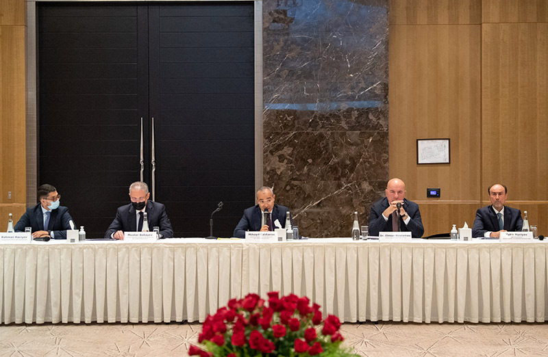 Görüşdə Qarabağ Dirçəliş Fondunun Müşahidə Şurasının sədri, Azərbaycan Respublikasının İqtisadiyyat naziri Mikayıl Cabbarov, Müşahidə Şurasının üzvü, Ekologiya və Təbii Sərvətlər naziri Muxtar Babayev, Azərbaycan Respublikası Mərkəzi Bankının sədri Elman Rüstəmov, Fondun İdarə Heyətinin sədri Rəhman Hacıyev, Azərbaycan Banklar Assosiasiyasının prezidenti Zakir Nuriyev, həmçinin ABA-nın Rəyasət Heyətinin üzvləri və bank sektorunun nümayəndələri iştirak edib.