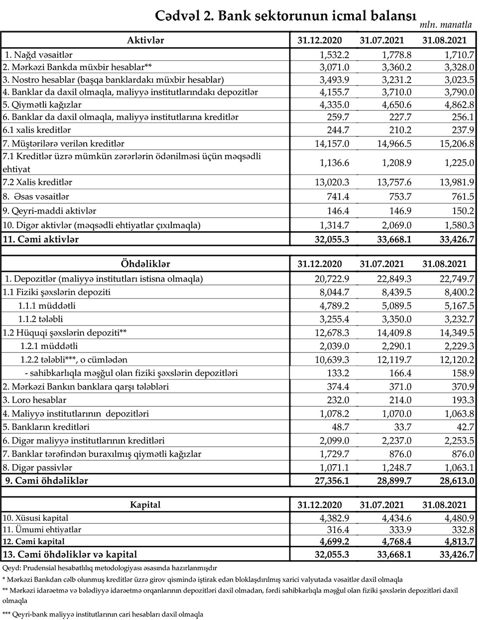 Azərbaycan Mərkəzi Bankı 31 avqust 2021-ci il tarixinə olan bank sektorunun əsas göstəricilərini açıqlayıb.