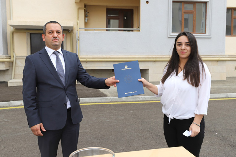 Məzunlara yeni mənzillərin açarlarını Nazirliyin tabeliyindəki Sosial Xidmətlər Agentliyinin sədr müavini Faiq Ağayev təqdim edib.