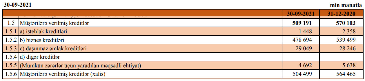 Marja Bankın heabatına istinadən xəbər verir ki, Bankın istehlak kreditləri portfeli 910 min manat və ya 1,6 dəfə azalaraq 1 milyon 448 min manata, biznes kreditləri portfeli 60 milyon 805 min manat və ya 11,3% azalaraq 478 milyon 694 min manata düşüb.