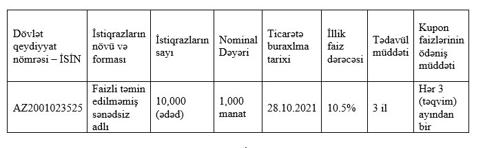İstiqrazlarla bağlı məlumatlar aşağıdakı kimidir: