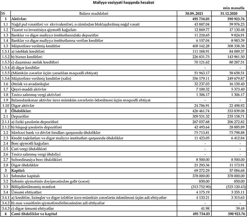 Xatırladaq ki, 2020-ci ilin 9 ayında “Yelo Bank”ın cəmi əməliyyat gəlirləri 43 milyon 348 min manat, cəmi əməliyyat xərcləri 43 milyon 506 min manat, xərclər gəlirləri üstələdiyindən əməliyyat zərəri 157 min manat təşkil etmişdi. Mümkün zərərlər üçün yaradılan məqsədli ehtiyatlara 23 milyon 35 min manat ayırması ilə əlaqədar olaraq Bank həmin dövrü 23 milyon 193 min manat xalis zərər ilə bağlamışdı.