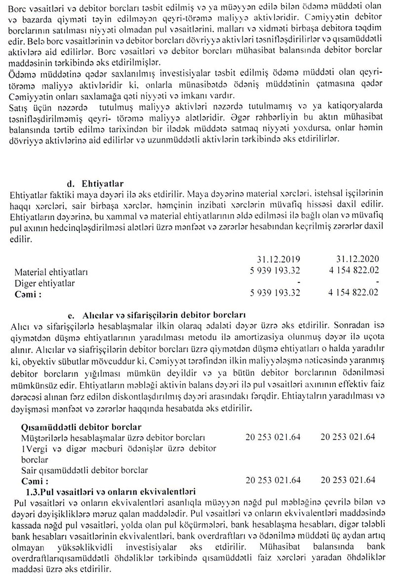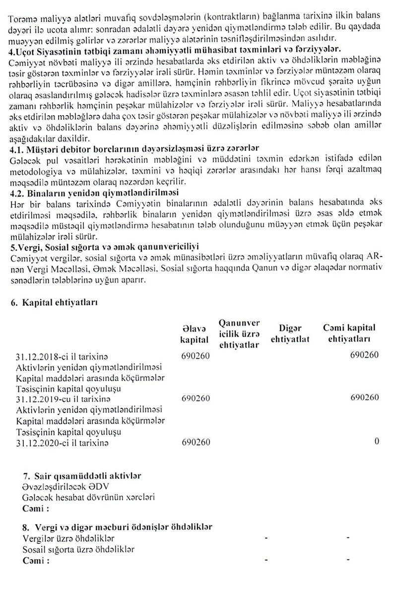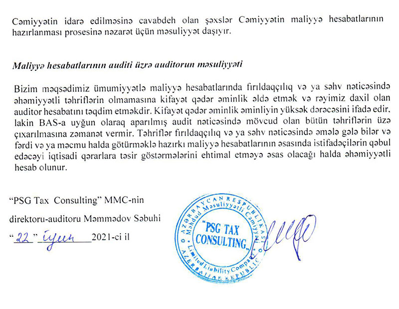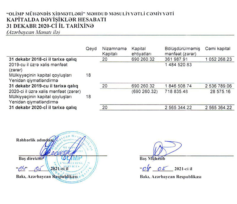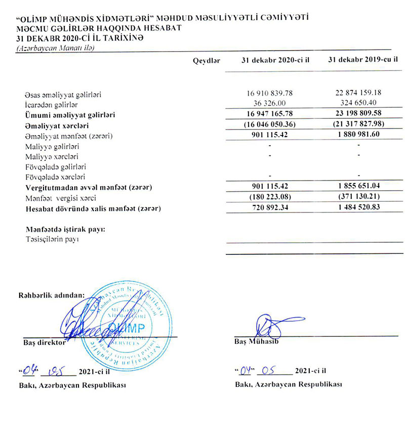 "Olimp Mühəndis Xidmətləri" MMC-nin 31 dekabr 2020-ci il tarixinə maliyyə hesabatları və müstəqil auditor rəyi.