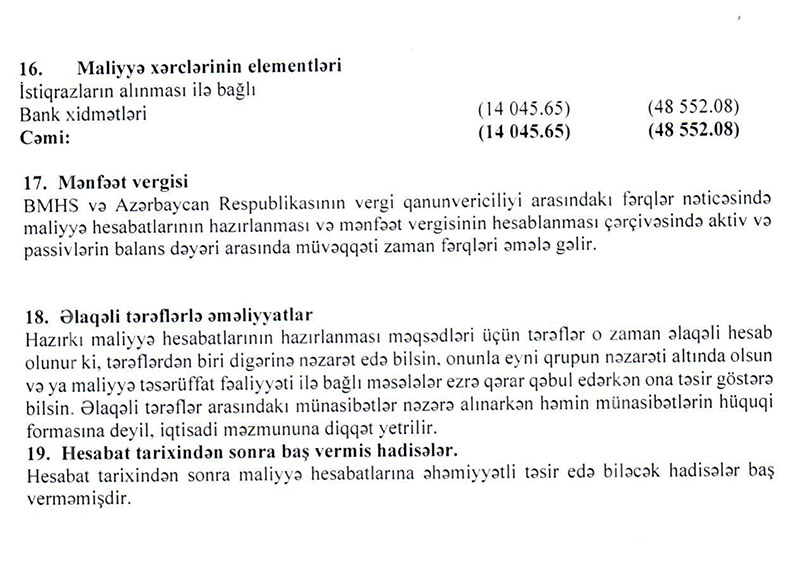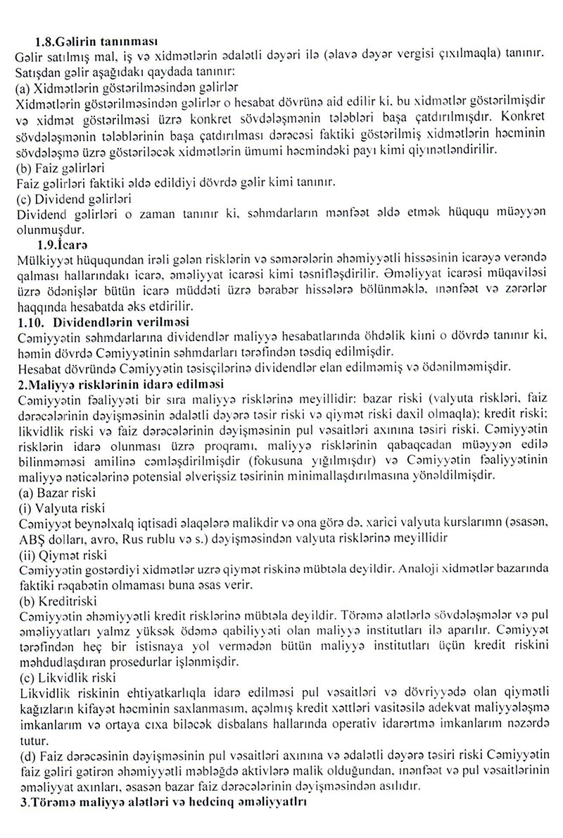 "Olimp Mühəndis Xidmətləri" MMC-nin maliyyə hesabatları və müstəqil auditor rəyi
