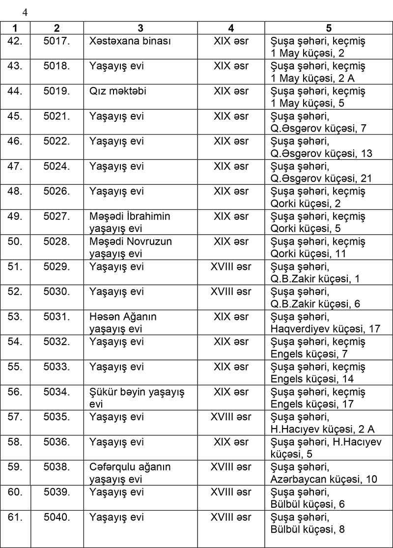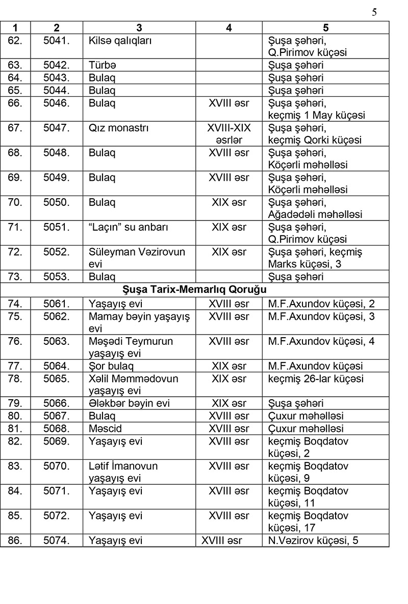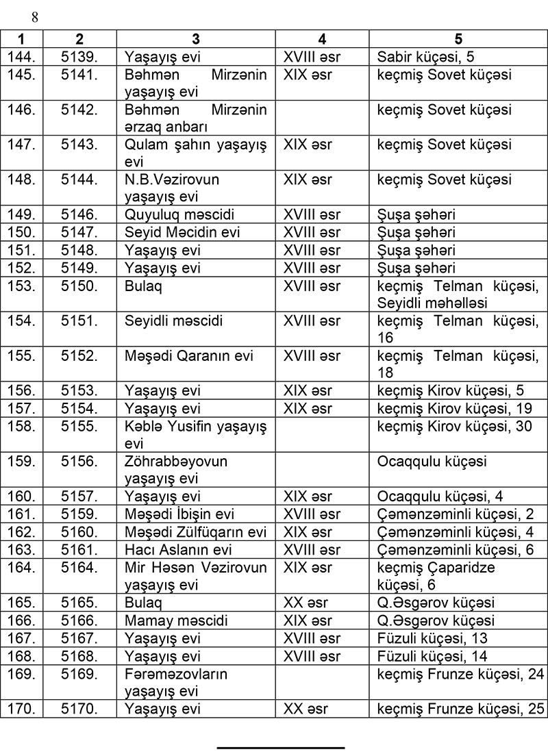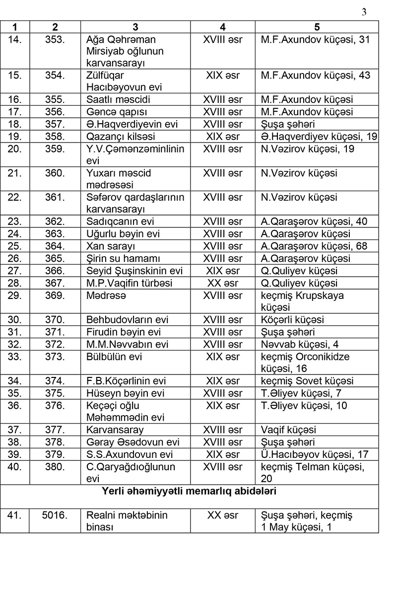 Şuşa şəhərinin ərazisində üzərində və mühafizə zonalarında reklam qurğularının yerləşdirilməsi qadağan edilən abidələrin siyahısı təsdiqlənib.