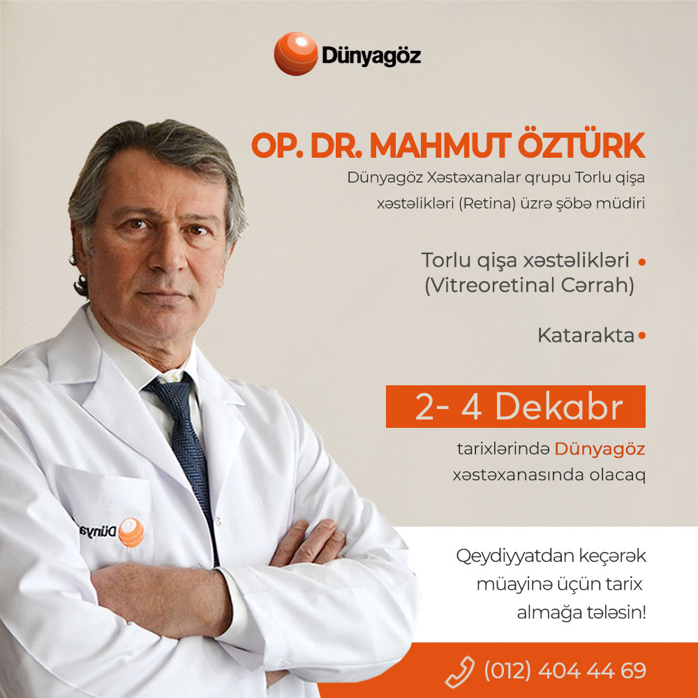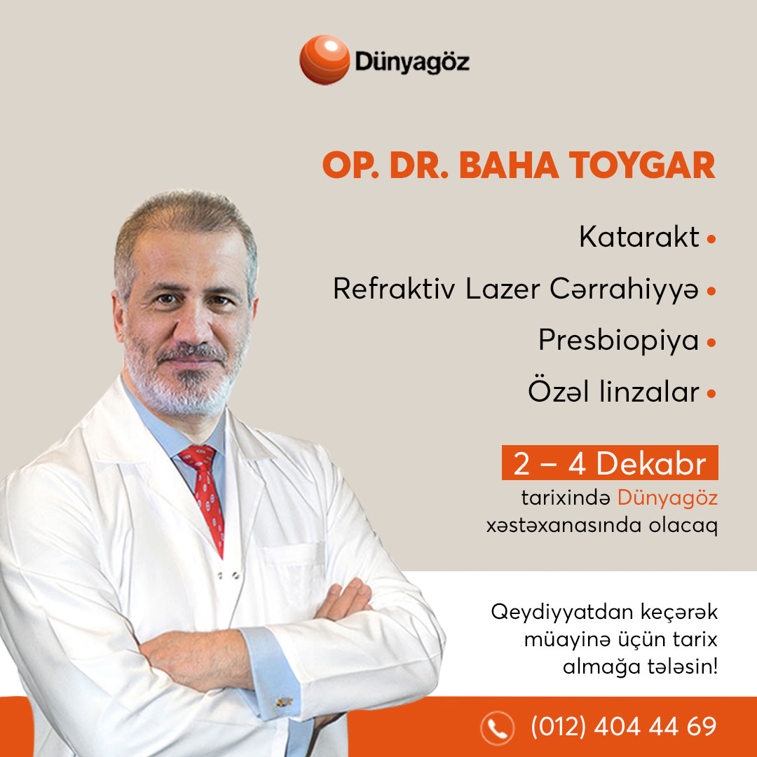 "Dünyagöz-Bakı" xəstəxanasında lazer əməliyyatı: 2 göz 900 manat. İstanbul və Ankara Dünyagöz xəstəxanalarından gələcək peşəkar həkimlər Azərbaycan xalqına xidmət göstərəcək.(®) 1996-cı ildən bu yana Türkiyədə 21, xaricdə 9 xəstəxana ilə xidmət göstərən "Dünyagöz" Xəstəxanalar Qrupu göz sağlamlığının bir nömrəli ünvanı olmaq prinsipini mənimsəyərək geniş kütlələrə çatmağa davam edir.