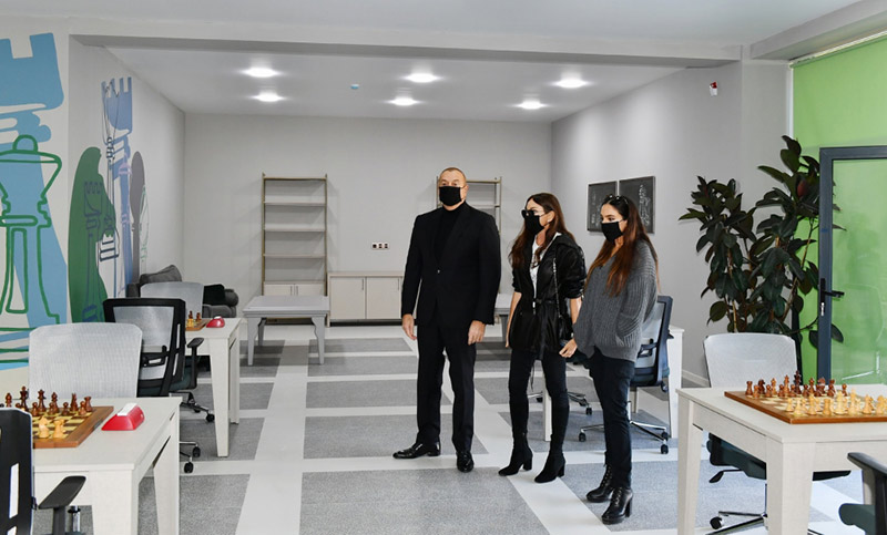 Prezident İlham Əliyev, birinci xanım Mehriban Əliyeva və qızları Leyla Əliyeva kompleksdəki 340 tamaşaçı yerlik üzgüçülük hovuzu, 6600 tamaşaçı yerlik futbol stadionu, Şahmat Mərkəzi və otellə tanış oldular.