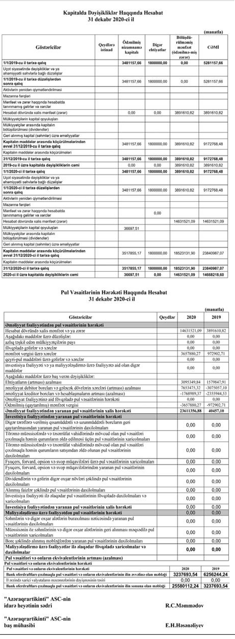 Satışın maya dəyəri isə 2020-ci ildə 2019-cu illə müqayisədə 59 milyon 342 min 215 manat və ya 27% azalaraq 219 milyon 31 min 371 manatdan 159 milyon 689 min 156 manata geriləyib.