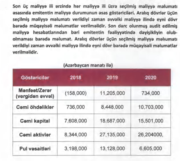 Marja.az xəbər verir ki, bu, təşkilatın istiqraz buraxılışı ilə əlaqədar Emissiya Prospektində bildirilir.